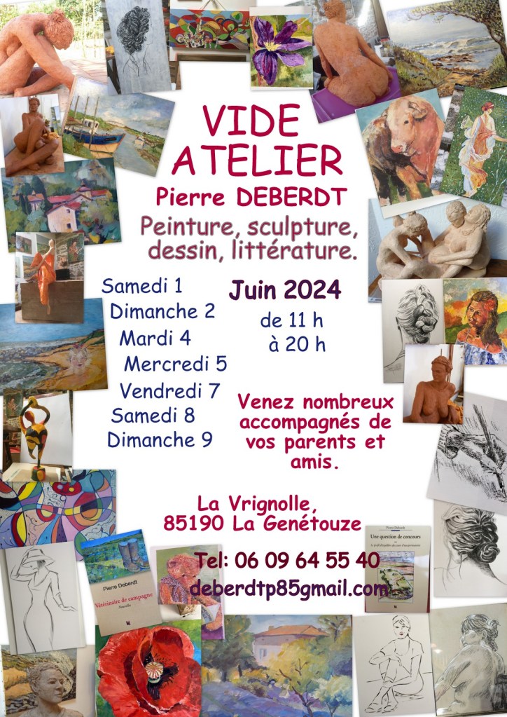 De peintures à l’huile, de sculptures en terre cuite et en bronze de votre serviteur.