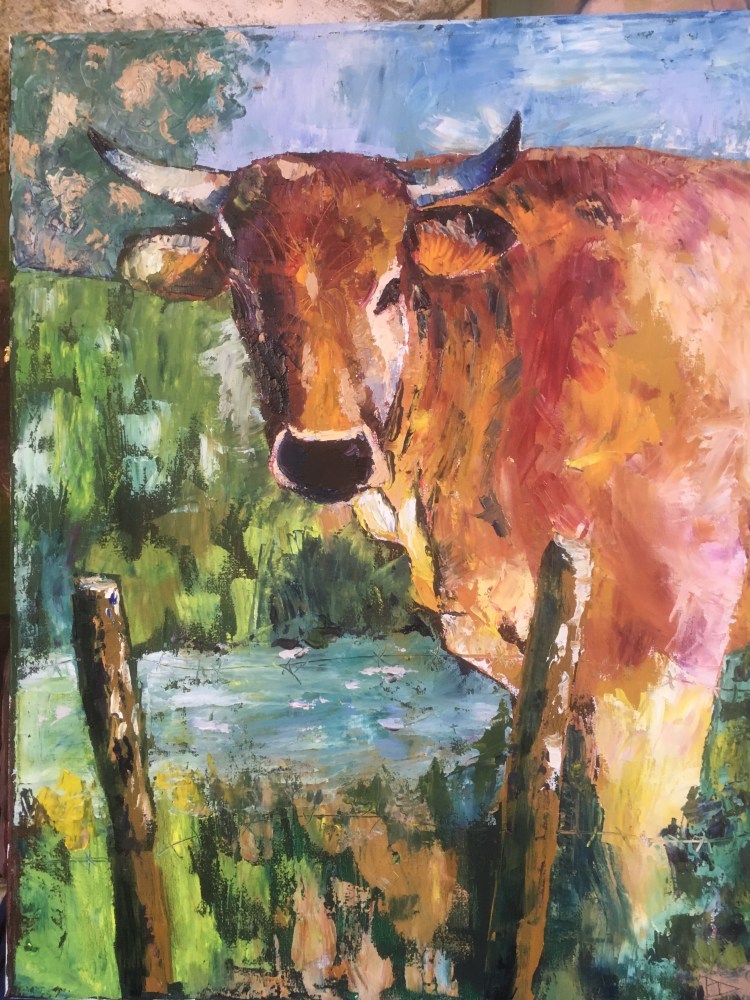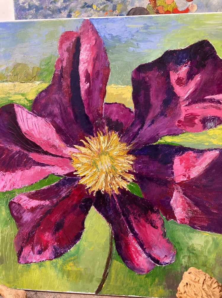 Surtout à l’huile. Soit au pinceau, ou au couteau avec de la cire d’abeilles. Travail de nombreuses années.